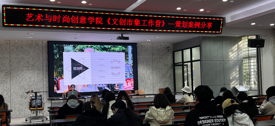 近日,为培育更多从事文创事业的人才,艺术与时尚创意学院邀请湖州市小西街文创休闲街区策划总监朱宇宁进行主题为“文创市集工作营——策划案例分享”的专业导论讲座,本次讲座由方璐琪博士主持。