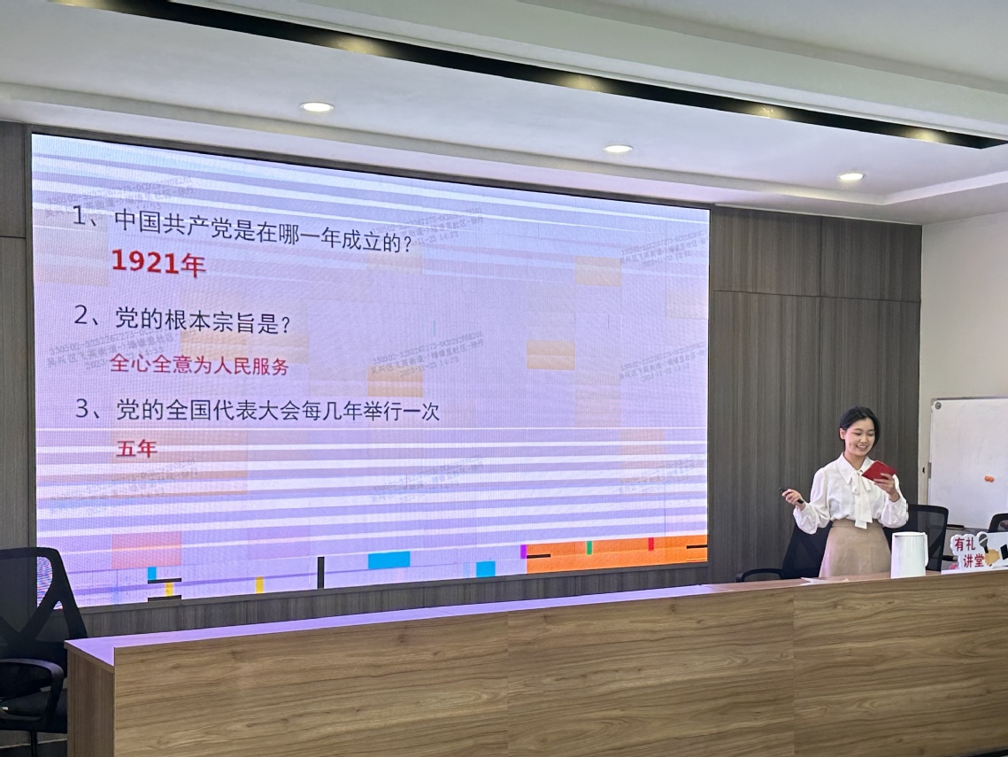 在这里,理论宣讲不再是单纯的照本宣科,“艺声习语”宣讲团的青年大学生们既是宣讲者又是表演者,他们用语言、用艺术讲述着中国共产党百年发展的巨大成就,分享着“八八战略”实施20年来的故事,重温着习近平总书记在浙江考察的足迹...... 真正推动理论学习往深里走、往实里走、往心里走。讲团成员们声情并茂的讲述着“梦在前方,路在脚下;志存高远,脚踏实地”的中国故事和拼搏精神;一笔一墨书写着从安吉余村起航的“绿水青山”的之路;用嘹亮悠扬的歌声吟唱出祖国的壮丽山河与深切爱意;更用一道道党史问答题点燃了现场的氛围,带领群众们回望百年征程。青年大学生们充分发挥自己的专业特长、讲述学习感悟,以小故事折射大时代、以小切口展现大主题,以青年视角阐释党的理论,发出“好声音”、讲出“真感情”,使本次理论宣讲有深度、有温度、更有力度,让党的创新理论“飞入寻常百姓家”,让基层群众在这场体验式、沉浸式、互动式的宣讲活动中加深对党的创新理论的深刻理解,为助力美丽湖州贡献青年力量。