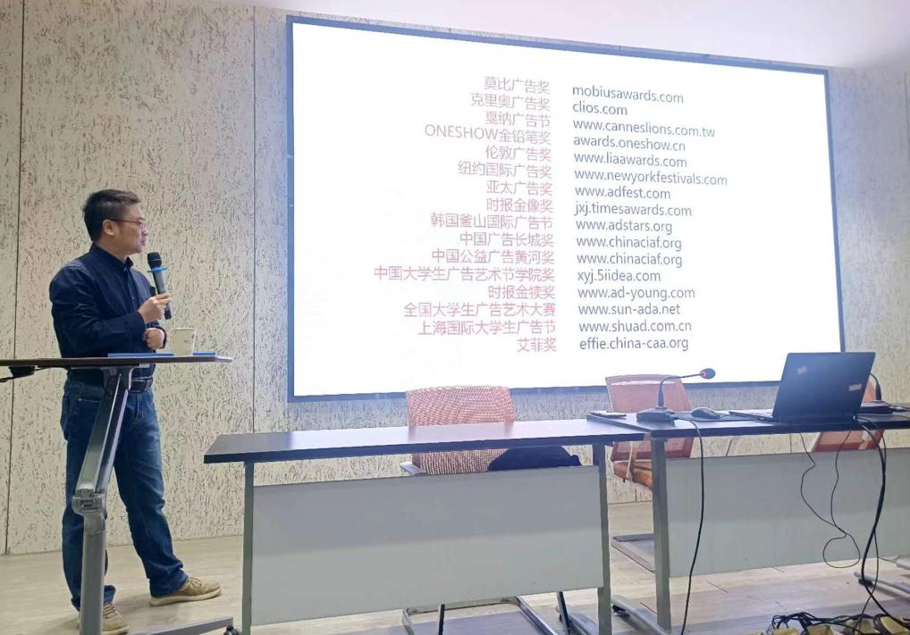 本次讲座周华清教授从学科竞赛入手讲授广告学专业实践教学思路,以国内外广告创意作品为例总结广告创意的原则,提出广告创意与设计表现方法;同时,结合行业发展现状和未来发展趋势,将社会的新知识、新技术、新需求、新趋势融入讲座,为相关专业学生的专业学习提供参考。
