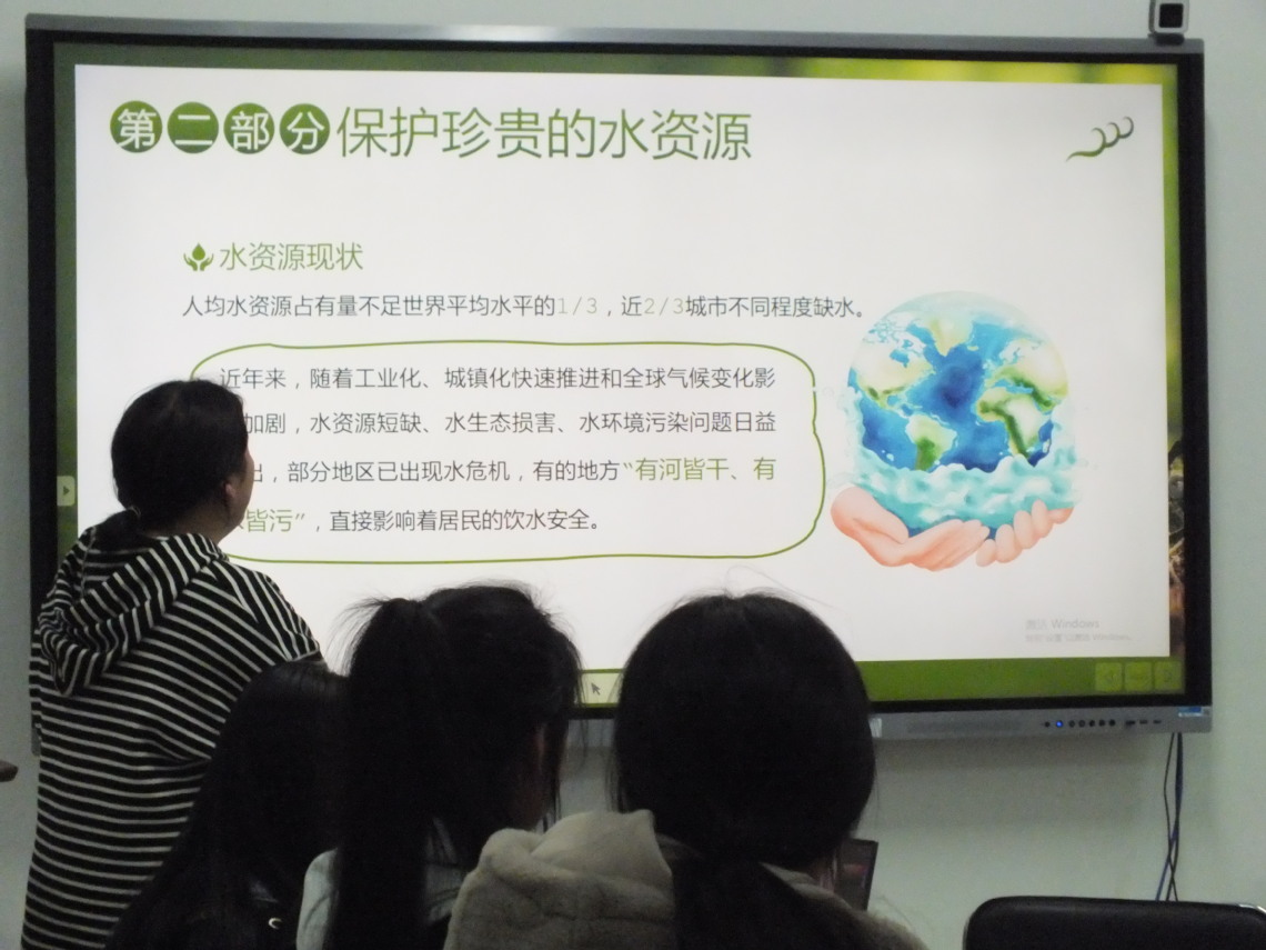 3月21日晚,线下讲座活动用一个小短片《一滴水的一天》引出本次讲座的主题“滴水在指尖,节水在心间”,观看视频后,由三位同学分别从世界水日的由来、水资源现状和举措及生活中如何节约用水等方面进行了讲解,他们用生动的语言,深入浅出地向学生阐述了水资源的现状、面临的挑战以及保护水资源的重要性,使学生深刻认识到节约用水是我们每个人的责任,明白每个人都应该为保护水资源贡献自己的一份力量。