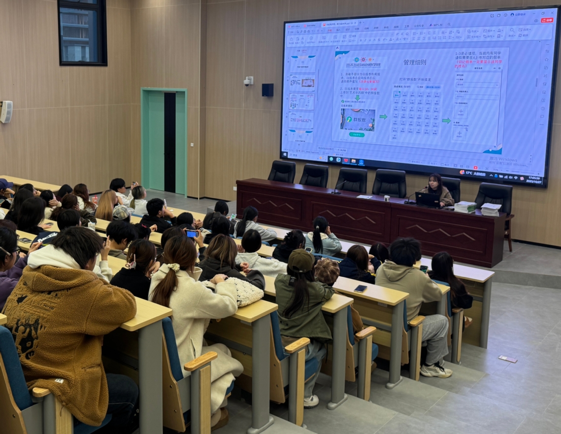 为夯实人才培养基础,以精准管理激活学风建设效能,10月27日,艺术与时尚创意学院在G02阶梯教室举办“守时筑学风,聚力创未来——考勤与学风建设同行”专题讲座。学院学风辅导员主讲,80余名学生代表现场参与,通过案例分享、制度创新解读,推动考勤管理与学风建设同频共振。