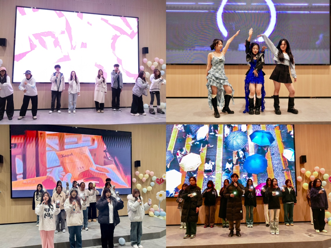 联谊环节成为晚会的一大亮点。各部门结合专业特色精心编排节目,文艺部精心准备的开场舞《LOVE SICK GIRLS》点燃整个晚会的氛围。随后,学生组织各部门精心准备的歌曲、舞蹈、小品等多种类型的节目轮番上演,内容丰富有趣,晚会现场其乐融融、温馨美好。节目间隙还设置了“谐音梗挑战”“看视频猜台词”等互动游戏,各部门成员积极参与,在欢声笑语中拉近了距离,增强了团队凝聚力。